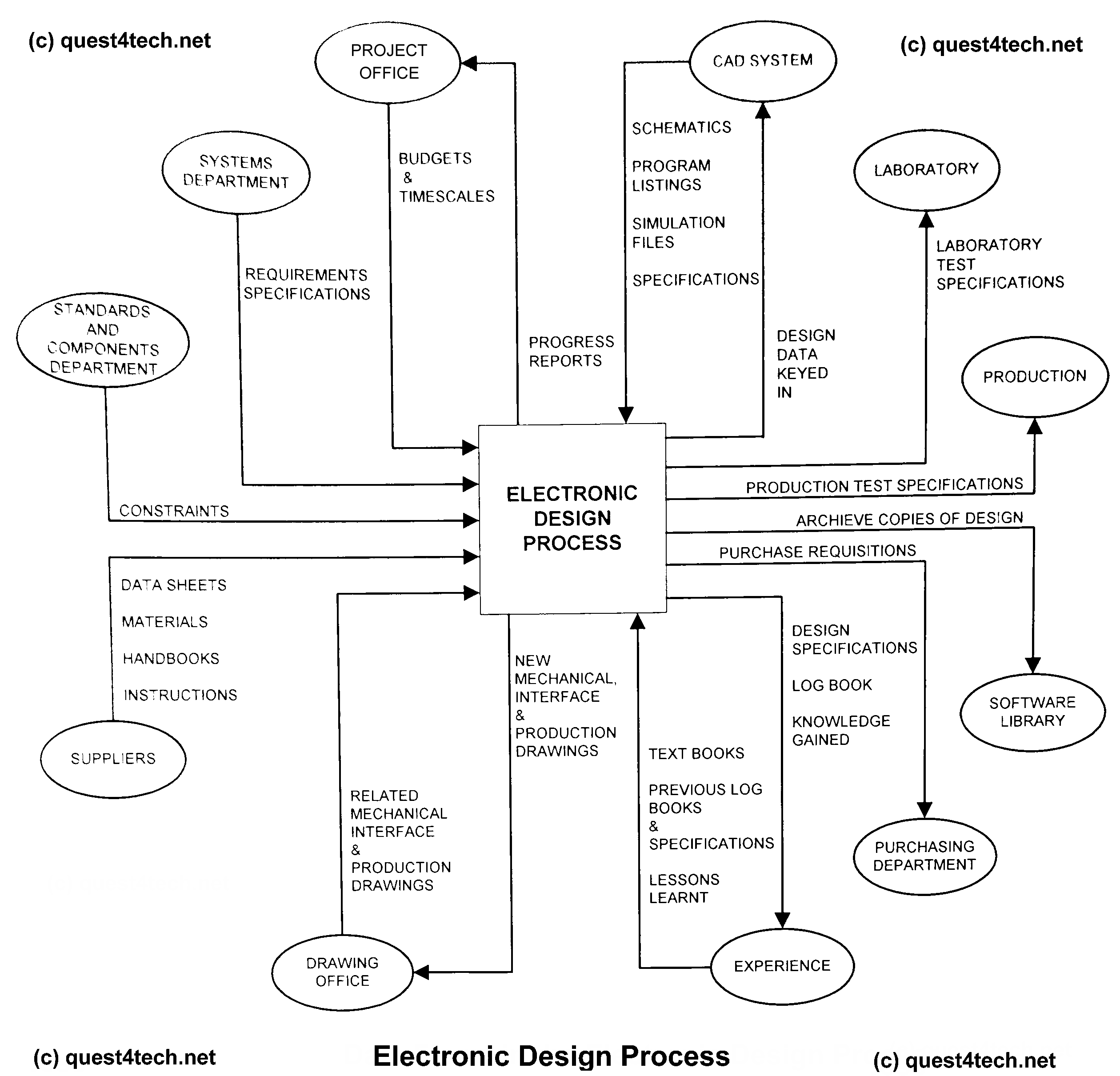 The block diagram is from a presentation I drew to show the knowledge and data flows in the electronics process of designing electronic units, boards and circuits.