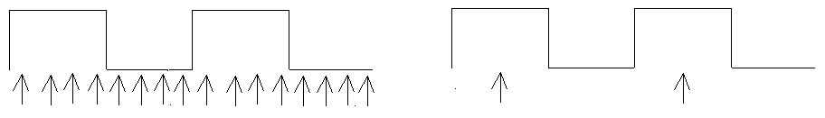 The preamble as the start of message is usually detected in the leading edge of the pulse. After detecting the preamble the rest of the message can be clocked into the circuit in the centre of the other pulses as shown in the following diagram.